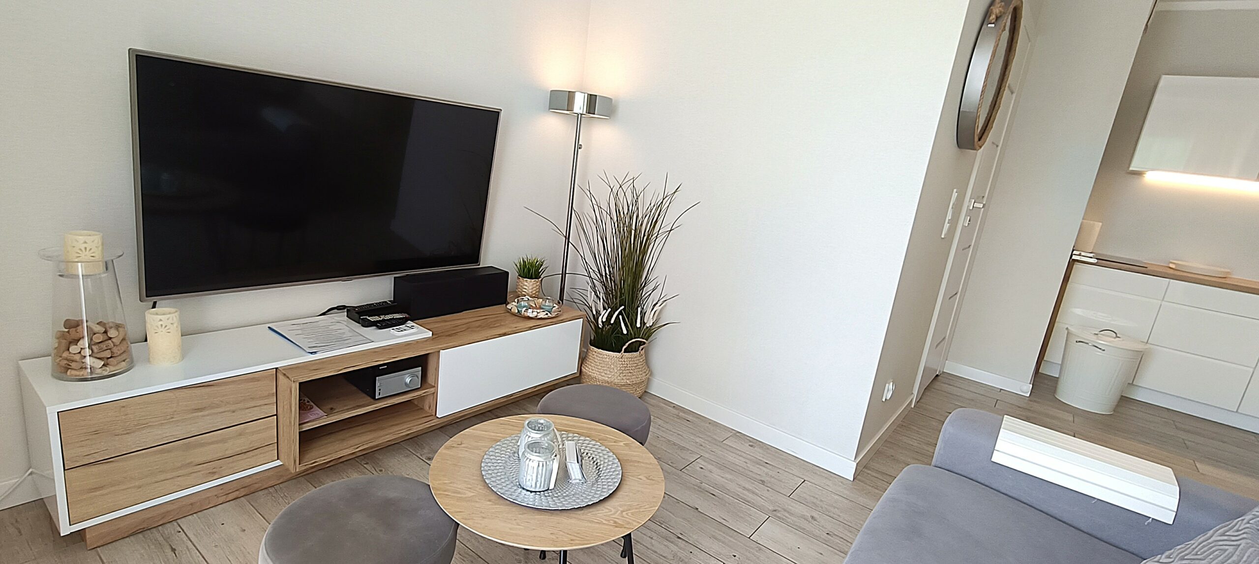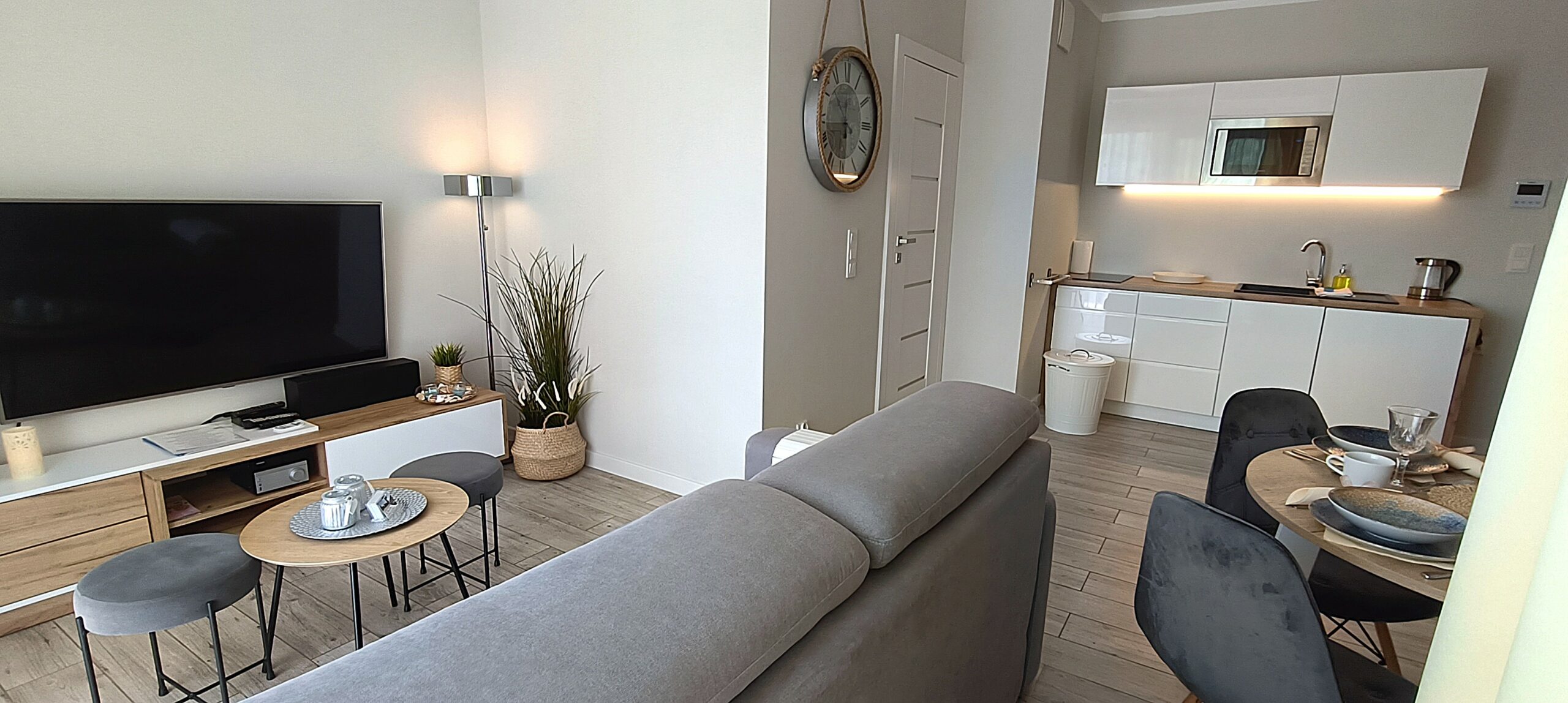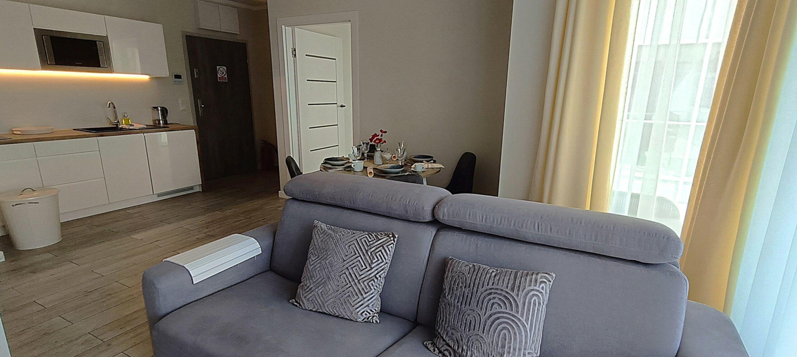 Nowoczesny, w pełni wyposażony apartament położony zaledwie kilka kroków od plaży – stworzony z myślą o wygodzie i relaksie.